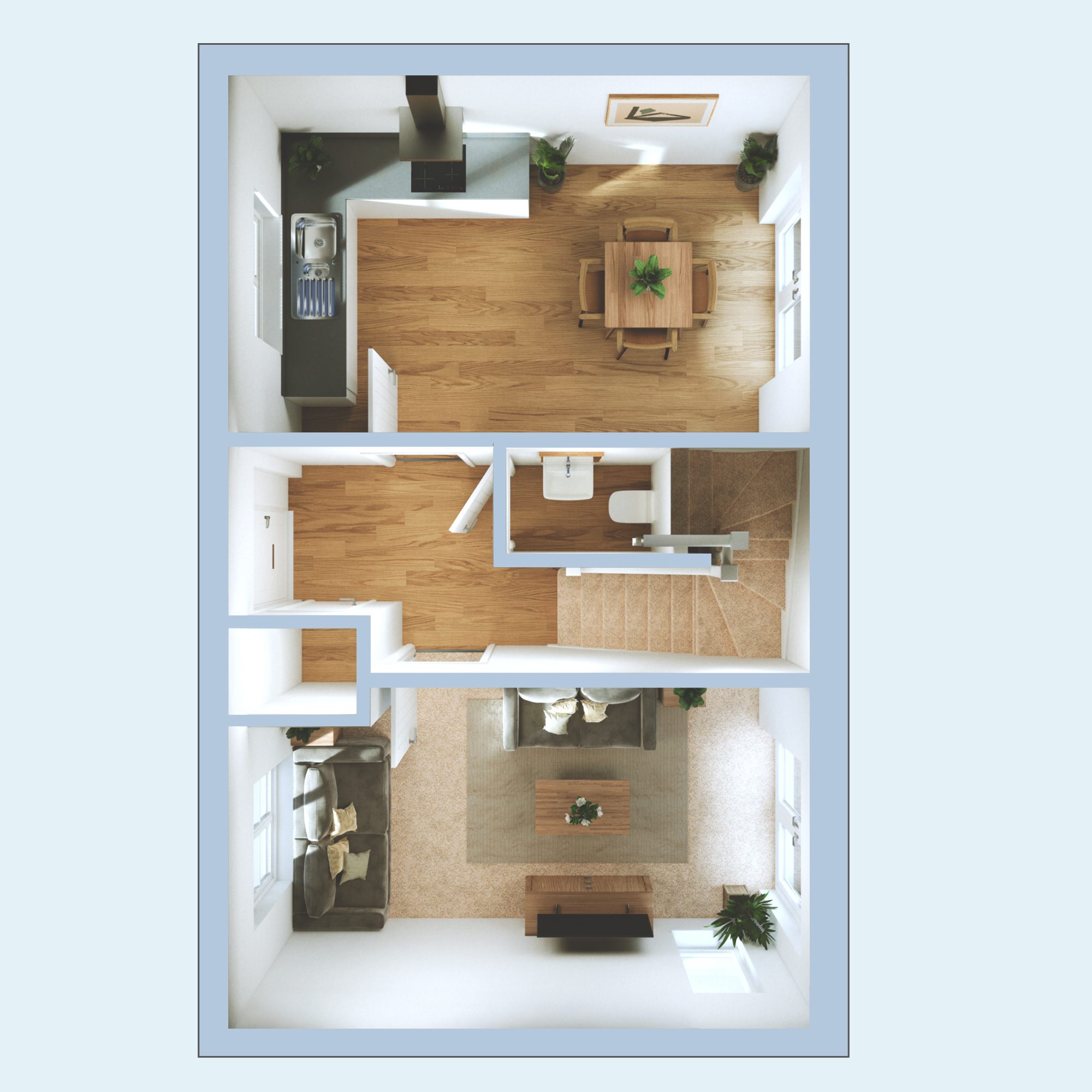 Stepping inside, a welcoming hallway connects the ground floor and creates an easy sense of movement throughout the home. To the front, the living room offers a calm and comfortable space – ideal for relaxing or spending time together. To the rear, the kitchen and dining area forms a bright and sociable hub, designed for everyday living. With doors opening out to the garden, this space is filled with natural light and creates a seamless connection between indoors and out. A convenient downstairs WC and useful storage complete the ground floor.