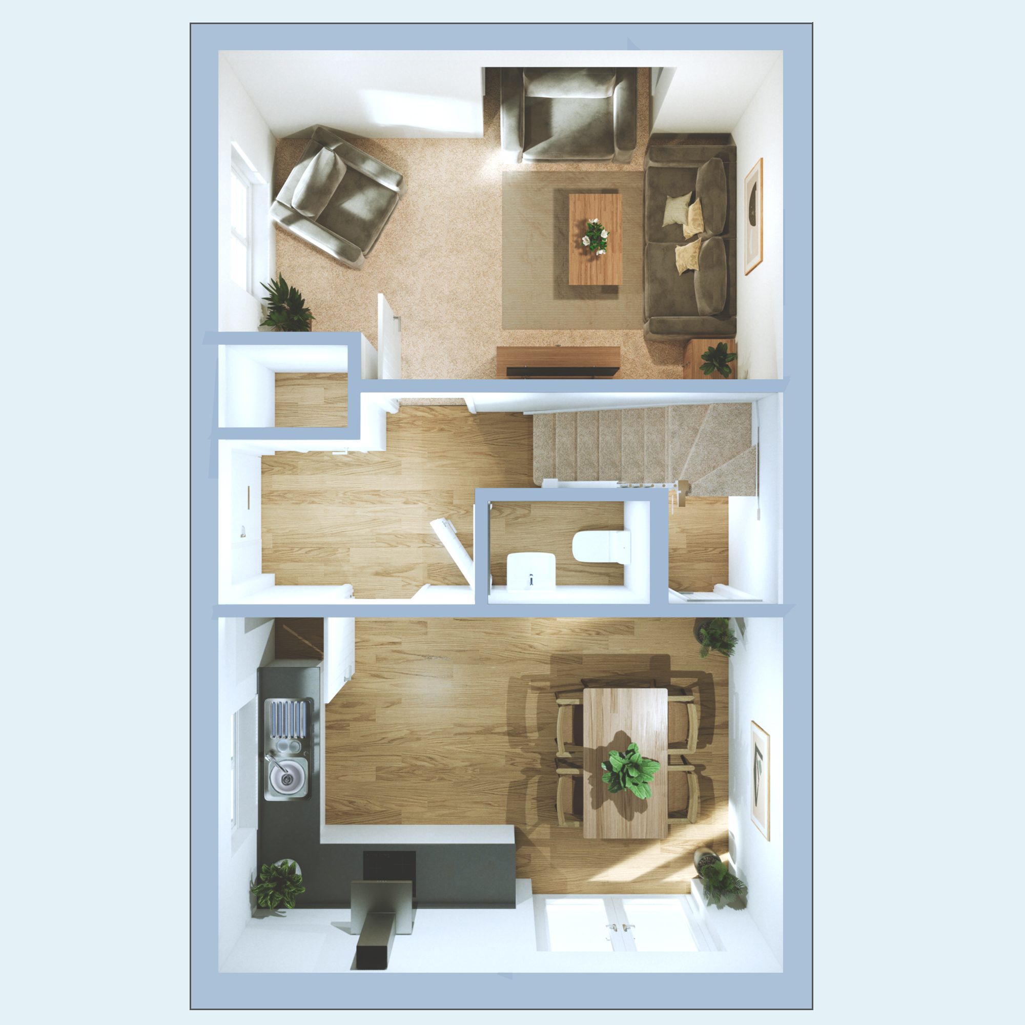 Stepping inside, the hallway creates a natural sense of flow across the ground floor. To the front, the living room offers a comfortable and calming space – ideal for relaxing or taking time out from the day. To the rear, the kitchen and dining area forms a more open and sociable setting, designed for everyday moments as well as time spent together. With doors opening out to the garden, this space feels light, connected and easy to enjoy. A convenient downstairs WC and additional storage help support the practicalities of daily life.
